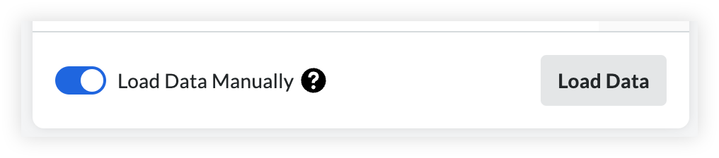 Nota: Por padrão, o seletor "Carregar dados manualmente" está ativado, oferecendo controle sobre quando os dados do relatório são atualizados, para reduzir o tempo de espera para relatórios grandes ou complexos. Como alternativa, você pode desativar "Carregar dados manualmente" para que os dados sejam atualizados automaticamente após cada edição sem clicar no botão "Carregar dados".